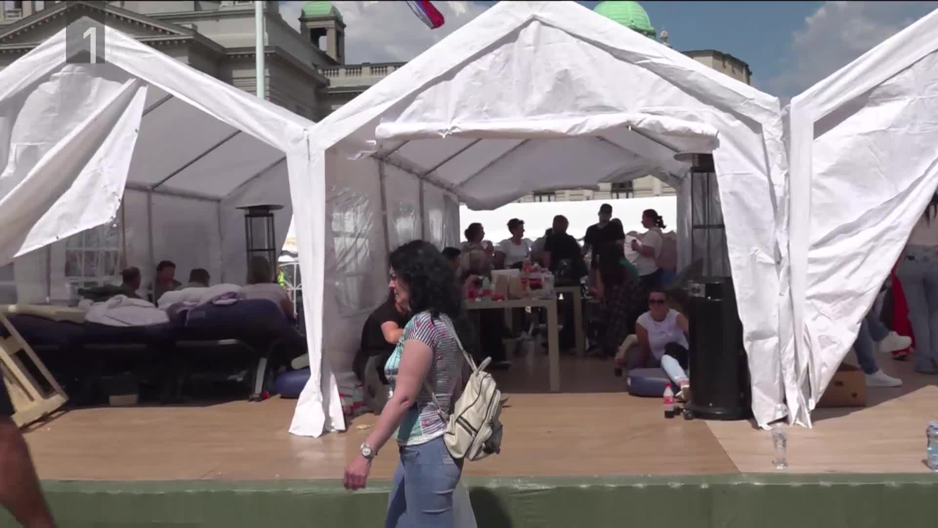 Pred skupščino v Beogradu ni več šotorov privržencev Vučića