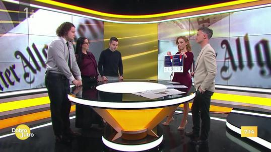 V oddaji Dobro jutro se bomo najprej ozrli na nedavno preživet »otožni ponedeljek« in se razveselili svetovnega dneva objemov ter dneva trenirke, nato pa bomo preverili, kako bo vreme vplivalo na naše razpoloženje in prometne razmere; pokukali bomo v izzive evropske avtomobilske industrije, ki jo pestijo pomanjkanje polprevodnikov in azijska konkurenca, ter pogledali v Los Angeles, kjer požari krojijo usodo zvezdnikov in podelitve nagrad; predstavili bomo tudi prihajajoči festival tolkal Bumfest in se ustavili pri zabavnih čevljarskih ter jezikovnih dogodivščinah (Slovar lažnih prijateljev med slovenščino in češčino); na oder Slovenskega ljudskega gledališča Celje nas bosta s predstavo Sen kresne noči popeljala igralci, v zgodovino ameriških predsedniških inavguracij pa dr. Gregor Antoličič; za piko na i se nam bo pridružila legendarna skupina Tabu, ki bo razkrila podrobnosti novega albuma ter popestrila to tokratno, optimistično torkovo jutro.