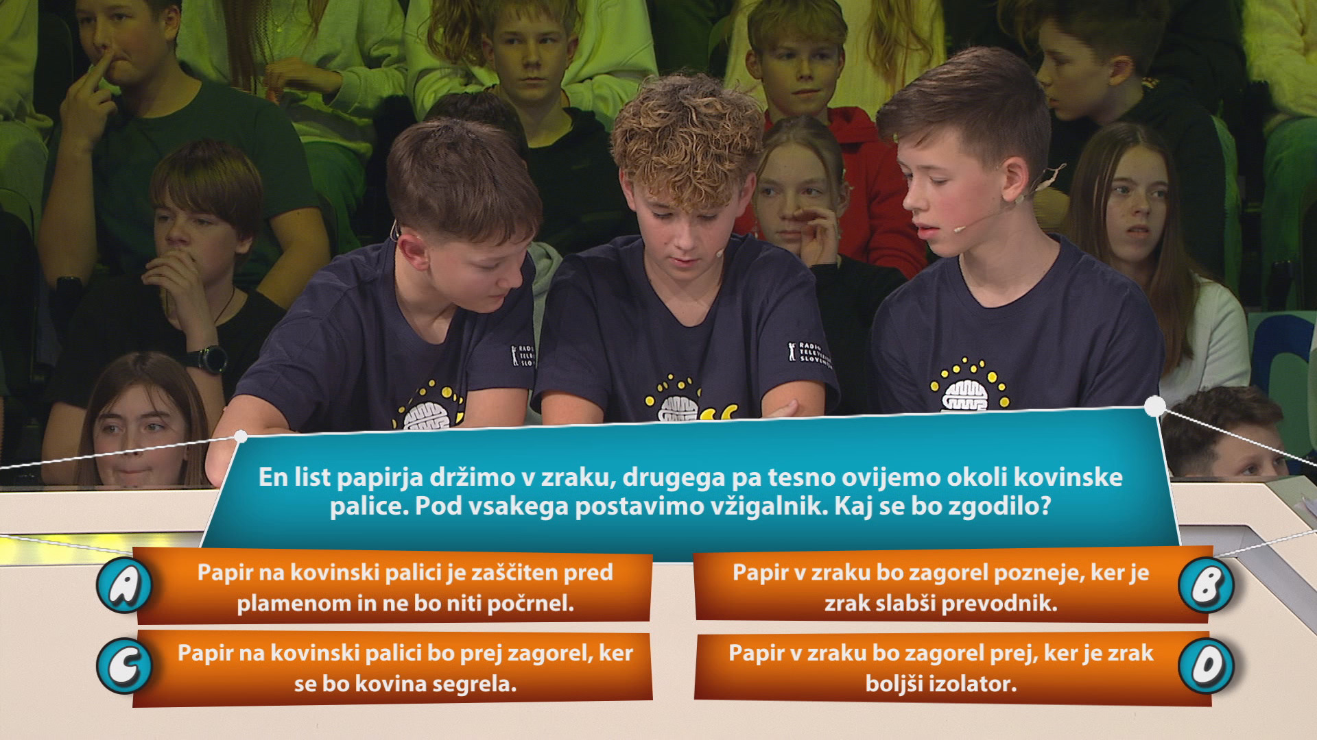 a) Papir na kovinski palici je zaščiten pred plamenom in ne bo niti počrnel.
