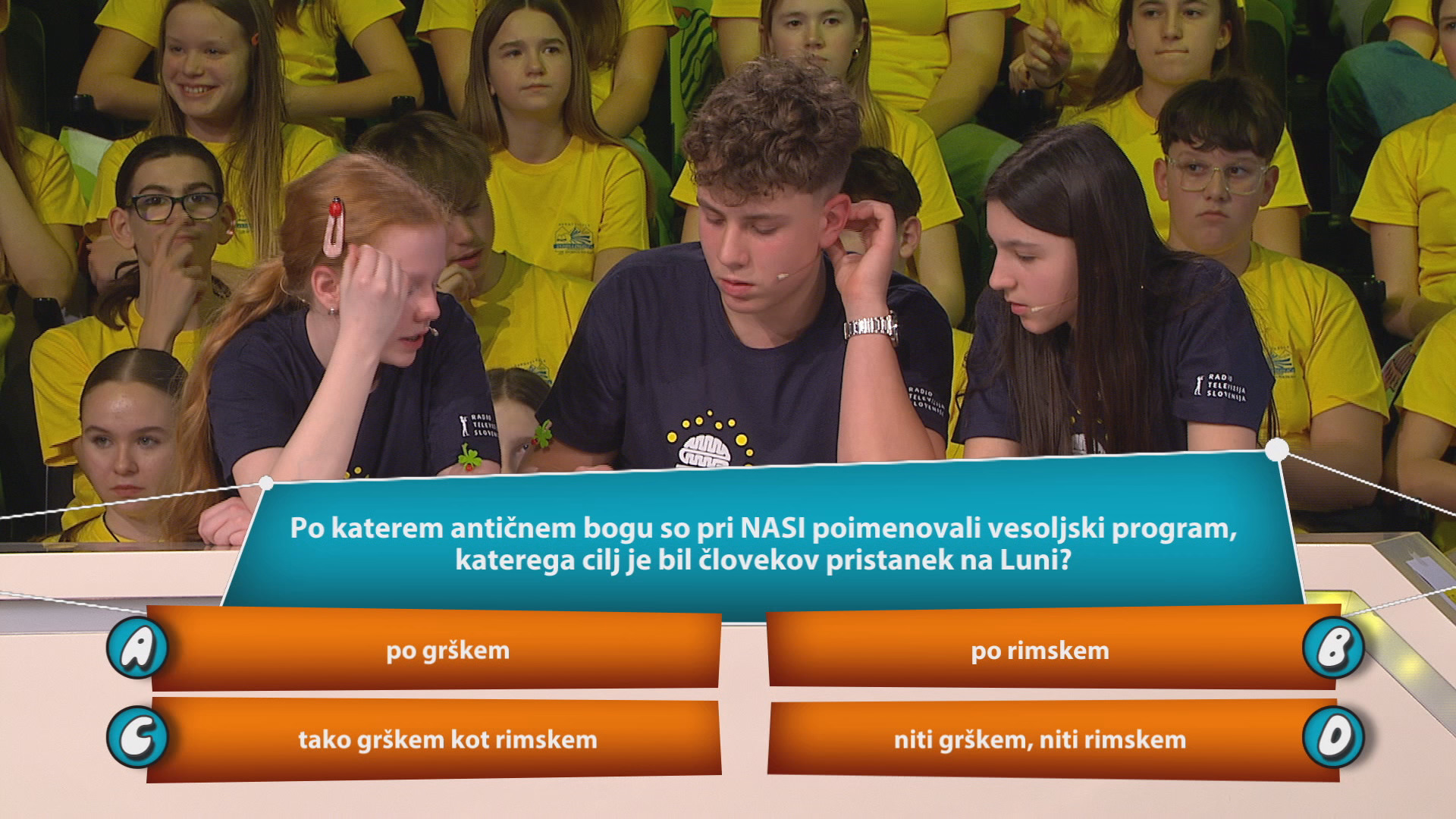 Po katerem antičnem bogu so pri NASI poimenovali vesoljski program, katerega cilj je bil človekov pristanek na Luni? a) po grškemb) po rimskemc) tako grškem kot rimskemd) niti grškem, niti rimskem