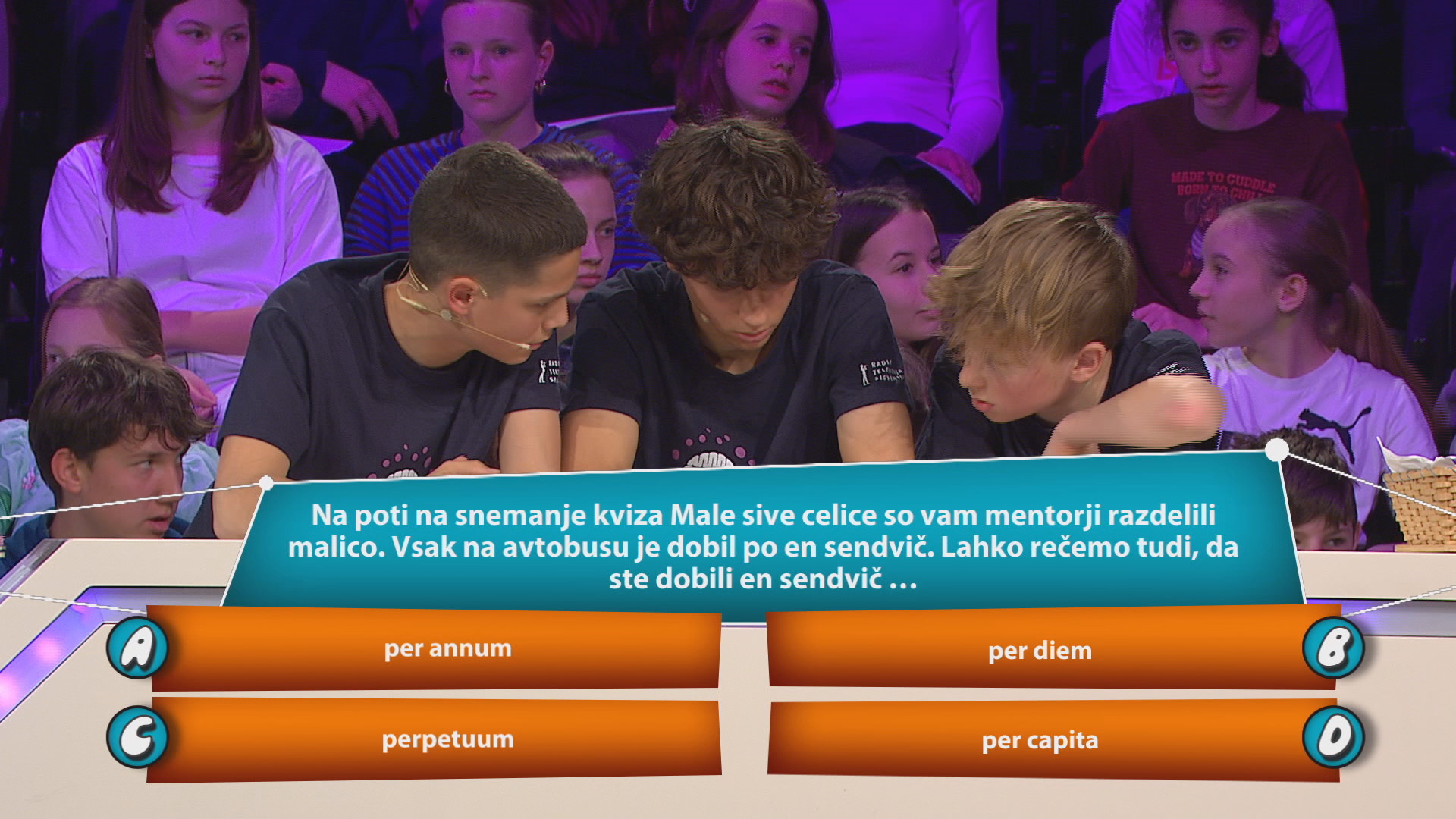 Na poti na snemanje kviza Male sive celice so vam mentorji razdelili malico. Vsak na avtobusu je dobil po en sendvič. Lahko rečemo tudi, da ste dobili en sendvič …