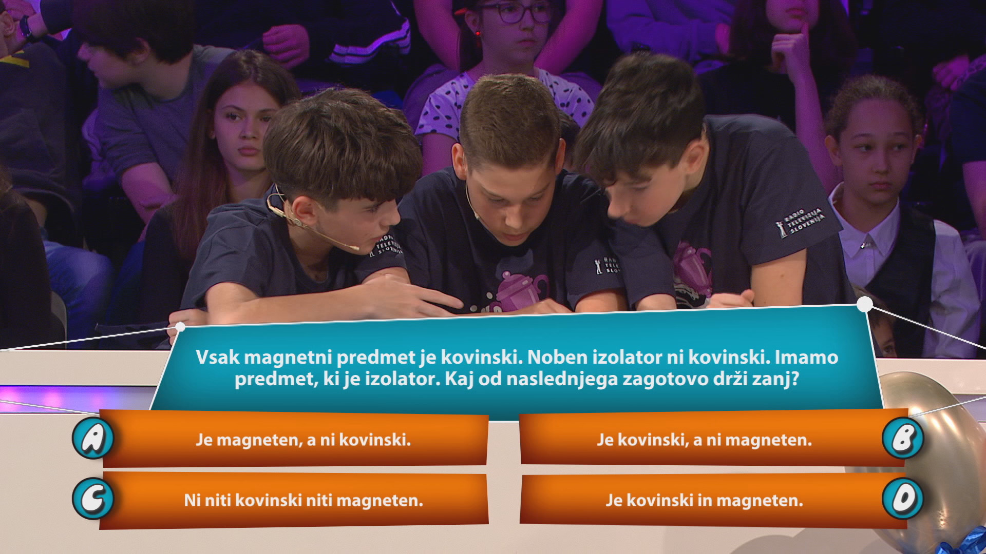 Vsak magnetni predmet je kovinski. Noben izolator ni kovinski. Imamo predmet, ki je izolator. Kaj od naslednjega zagotovo drži zanj?